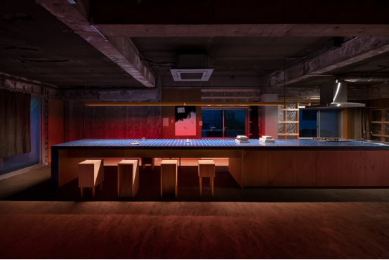 這座粗野主義藝術(shù)家工作室的靈感源于一個泰國節(jié)日。設計師 Ab Rogers 和藝術(shù)家 Hiraki Sawa 于2018年在泰國一年一度的Wonderfruit聚會上相識,并因魚而結(jié)緣(兩人都是烹飪愛好者)。Sawa 曾在斯萊德藝術(shù)學院師從英國藝術(shù)家 Phyllida Barlow,以短片和拼貼動畫聞名,他于2019年接管了一個毛坯的空辦公室空間,最初計劃與商業(yè)伙伴建立一個小型聯(lián)合辦公空間。隨后他改變了策略,決定創(chuàng)造一些更冒險、打破類型化的東西,他稱之為“共在(co-being)”空間。