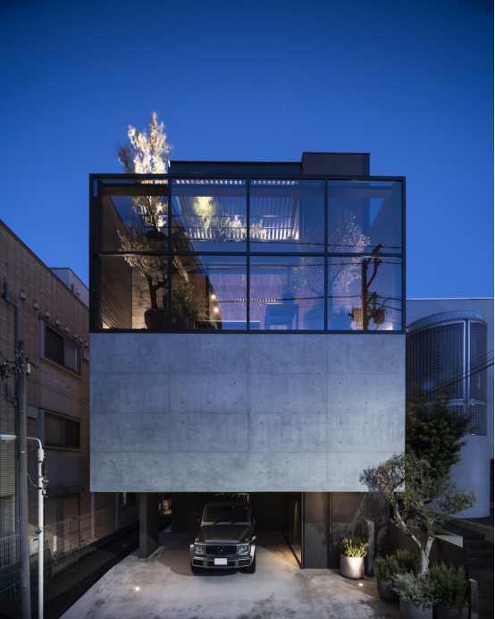 這棟時尚住宅位于東京澀谷區(qū)一個安靜的住宅區(qū)角落,其特點是塊狀的混凝土體量,在低層顯得 opaque 而神秘,但隨著客人向上移動,變得輕盈而透明。該建筑名為 Esprit,由 APOLLO Architects & Associates 的主持建筑師 Satoshi Kurosaki 設計,還設有一個通風的雙車位?piloti(架空柱廊)車庫,標志著入口。客戶——一個有孩子的家庭——現(xiàn)在可以享受一個感覺寬敞開放的極簡主義空間,同時通過單向玻璃和充滿植物的半開放過渡區(qū)等行業(yè)技巧來保護他們的隱私。
