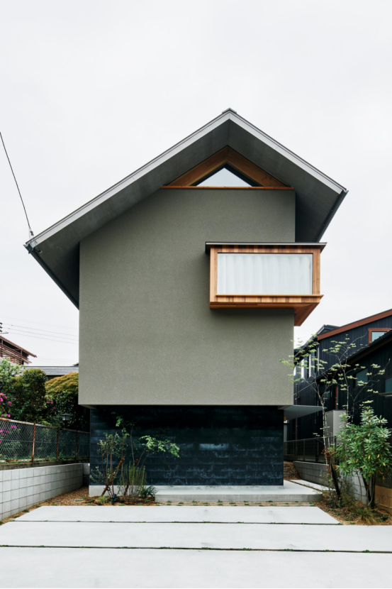 由 Nobuyoshi Hayashi、Hiroshi Kaito 和藪下繪里(Eri Yabushita)創(chuàng)立的 écrit Architects 擁有令人印象深刻的作品集,其中 strongly 專注于獨戶住宅。藪下是 Uedayama House 的主創(chuàng)建筑師,為名古屋的一對年輕夫婦和他們的兩個孩子設計了一個簡單而寬敞的家。狹窄但高大的上層餐飲和廚房區(qū)域尤其突出,其裸露的橫梁和兩端特色的三角形窗戶。