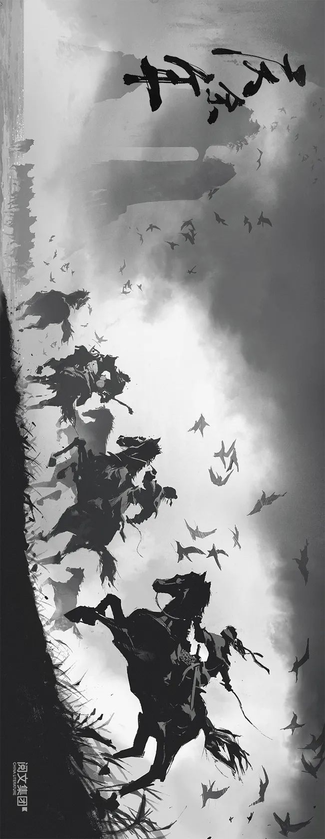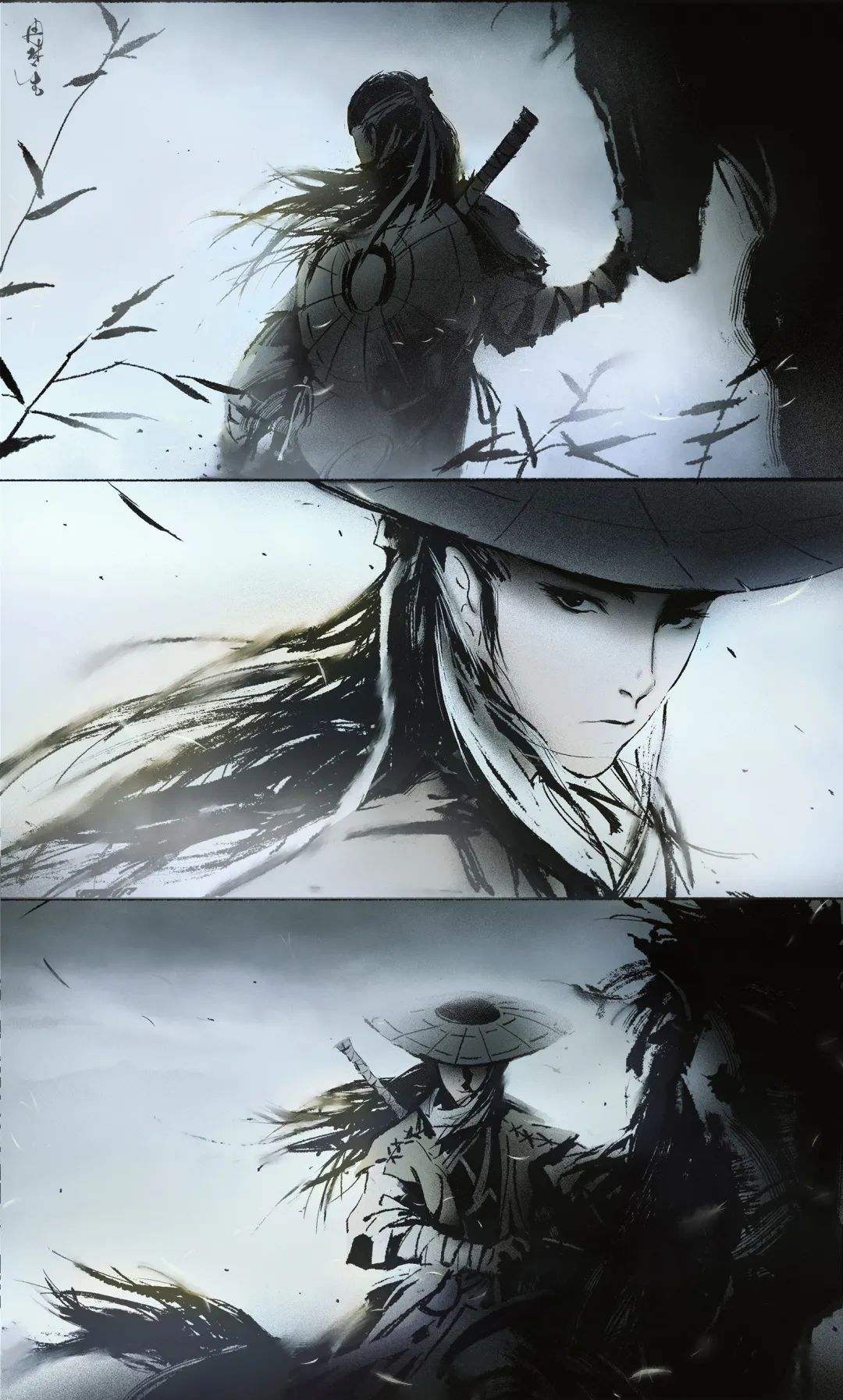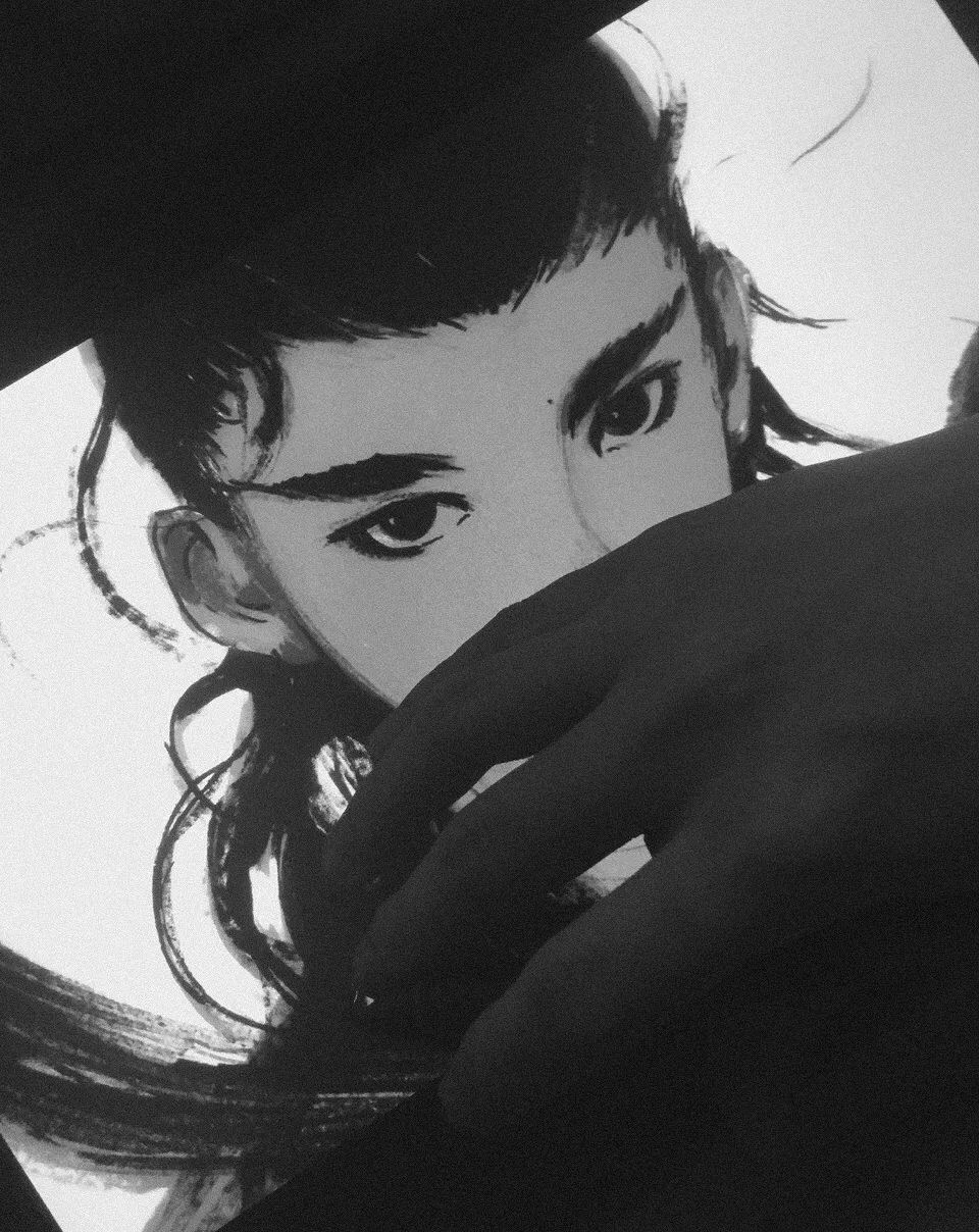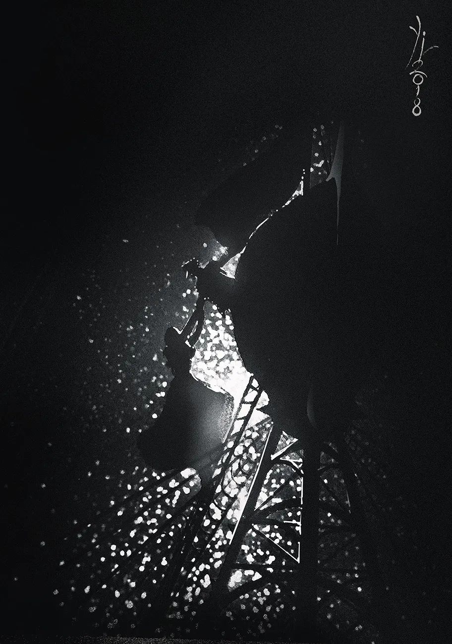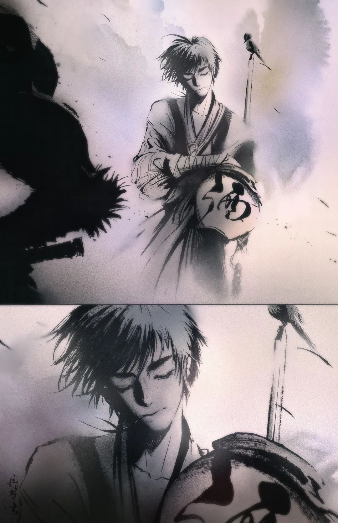截至18年,錢憶畫得最多的就是黑白水墨畫,代表著他內心水墨色的江湖與水墨色的少年。