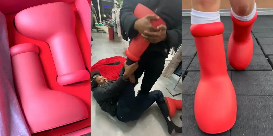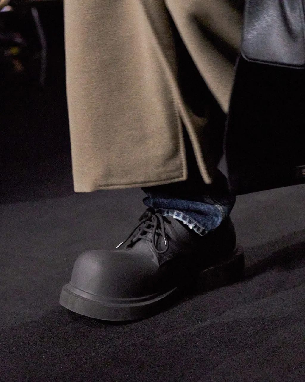 以上就是今年TEDDY看好的幾款巨大化球鞋的“新星”,除了這些以外,近日MSCHF的阿童木靴在這段時(shí)間瘋狂刷屏。這種可以說是放棄了任何穿著舒適性只追求夸張?jiān)煨偷脑O(shè)計(jì)是否正確?我們無法言斷,但是博主們的瘋狂上身,社交媒體上的大量好評(píng)好像也已經(jīng)給出答案。在現(xiàn)在衣服廓形越來越大的現(xiàn)今,幾年前流行的微喇、落肩外套已經(jīng)轉(zhuǎn)變成為了闊腿褲與巨大的墊肩外套。在上半身甚至整身視覺都很巨大的情況下,人們需要一雙能夠不顯得頭重腳輕,讓比例看著合理的球鞋。所以這也是時(shí)裝設(shè)計(jì)發(fā)展的產(chǎn)物。但是簡(jiǎn)單的放大,還是在上面追求繁復(fù)或是“阿童木靴”的那種極簡(jiǎn),相信各位設(shè)計(jì)師們還處于在探索的階段,不過現(xiàn)如今入手一雙“大胖鞋”一定不是一件壞事。