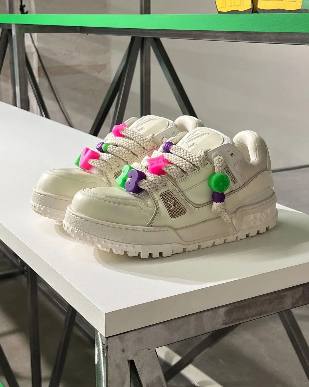 如果是BALENCIAGA的新德比是米奇大頭鞋,今年LOUIS VUITTON的胖版Trainer就像是小孩玩的玩具。沿用了Trainer經(jīng)典的設(shè)計(jì)和鮮亮的色彩的同時(shí),將其整體放大并配上了加厚的鞋底,給人了一種雪地靴的觀感。同時(shí)還獻(xiàn)上了真?雪地靴版本的Snow系列。球鞋版本的新Trainer肥肥胖胖的鞋型配上麻繩樣式的鞋帶和鮮艷的配飾顯得童趣十足,低幫版雪地靴造型也讓其比現(xiàn)在遍地都是的“加肥滑板鞋”更具辨識(shí)度。不得不感嘆Virgil團(tuán)隊(duì)在最后一季球鞋設(shè)計(jì)中加入的巧思。