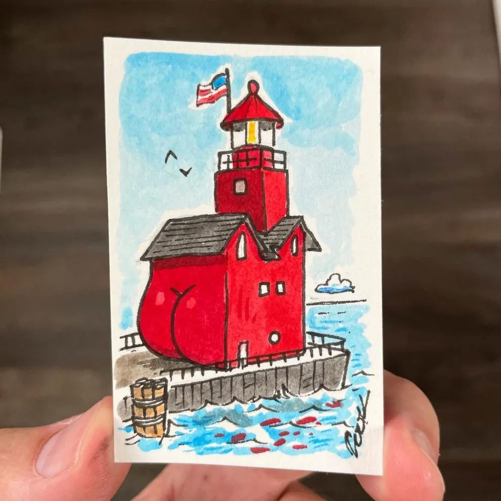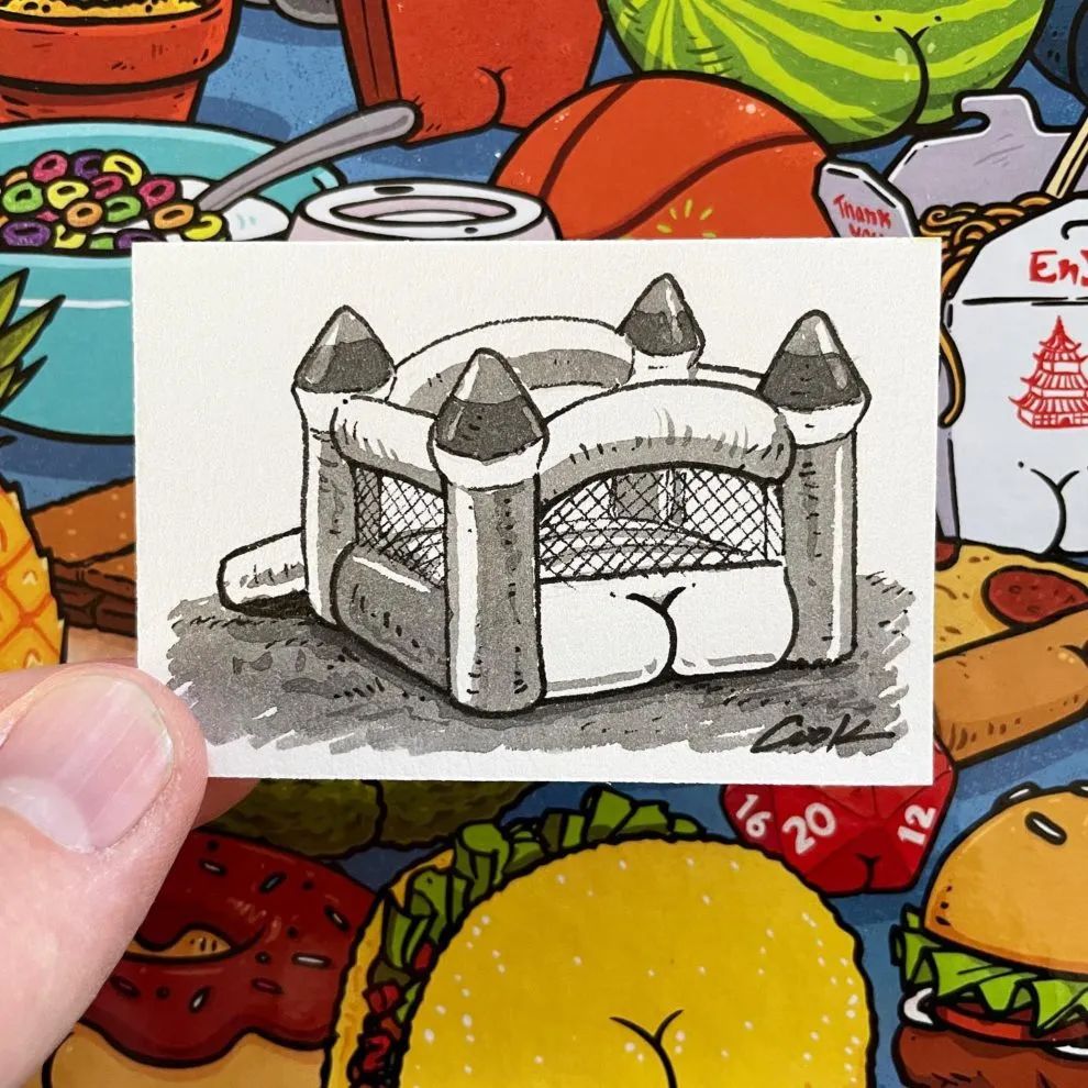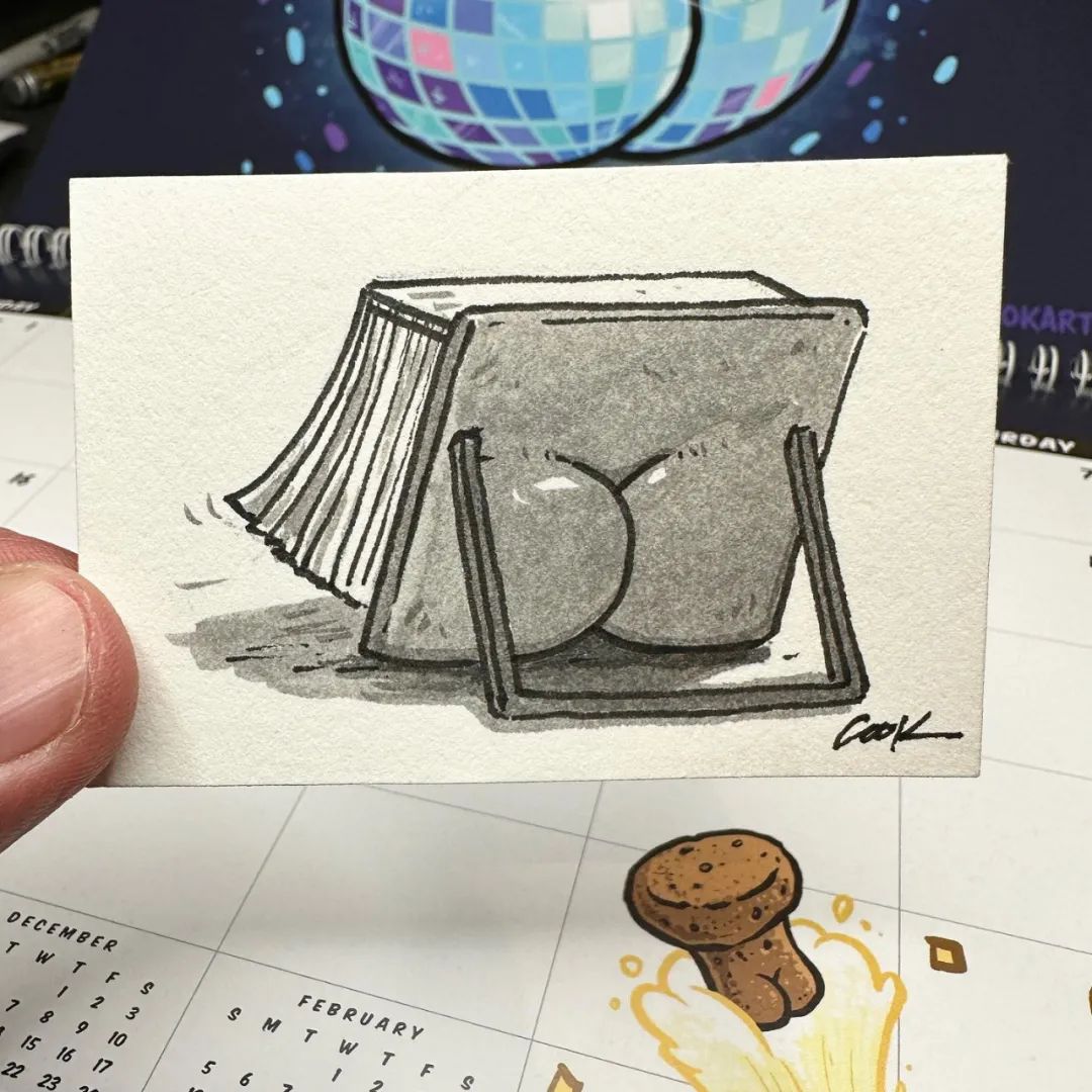 在這位插畫家的筆下,專屬于我們人類的屁股,被繪制到各種各樣的事物上,想象一下,當帆船、酒瓶、書本、帽子和杯子都擁有屁股后的古怪場景,沒有想象出來也不要緊,因為這位名叫布賴恩·庫克的插畫家已經幫我們想象出來了,在他的畫作中,世界上的任何事物都可以擁有屁股,當然,在這些事物擁有屁股后,一個個搞笑的畫面也誕生出來。