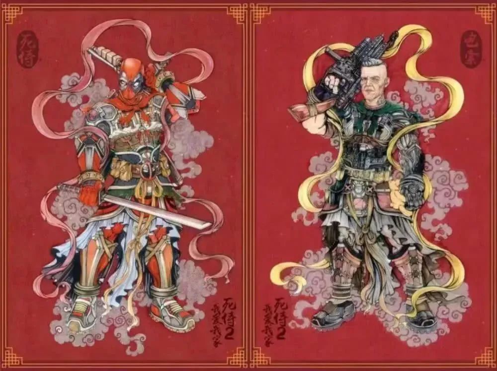 春節死侍和電索化身為門神,別有一番風味,真·紅紅火火了。