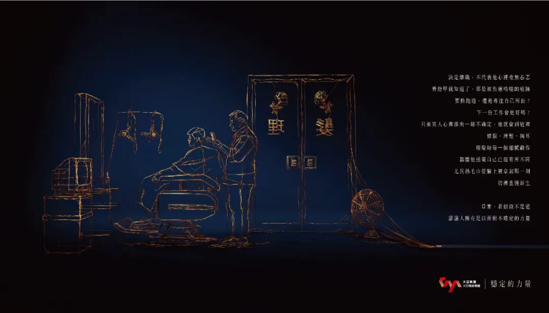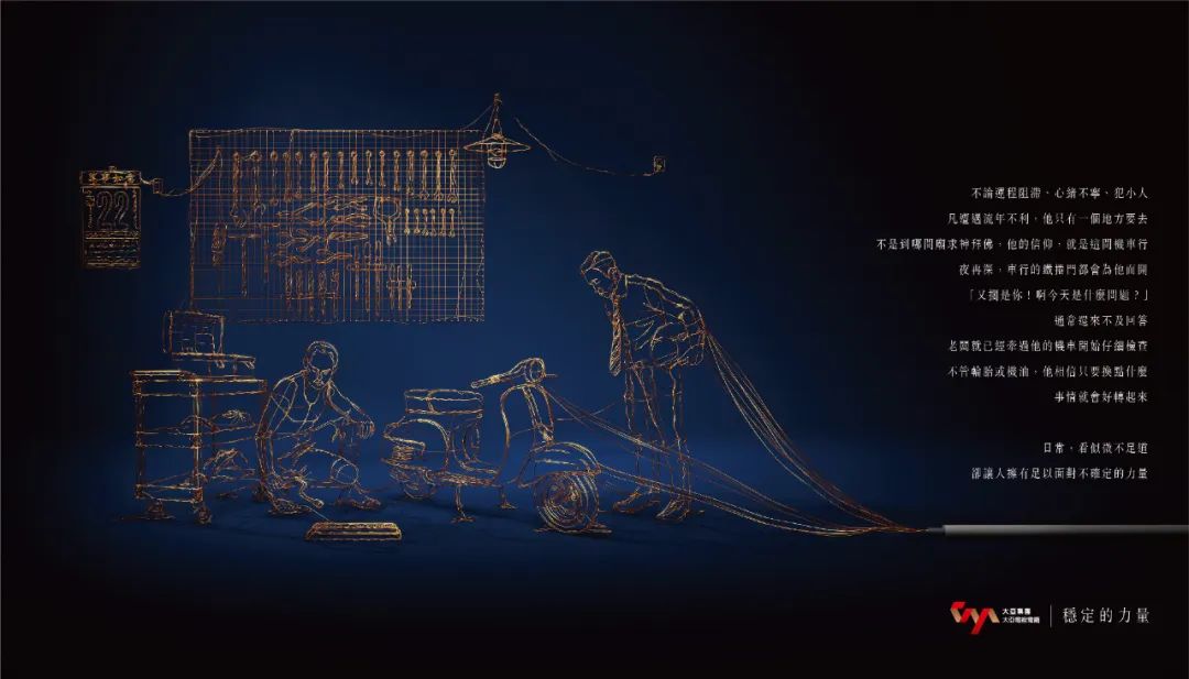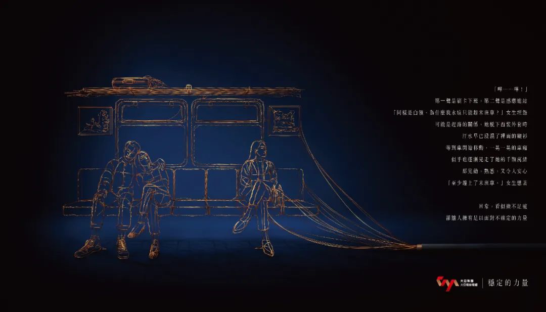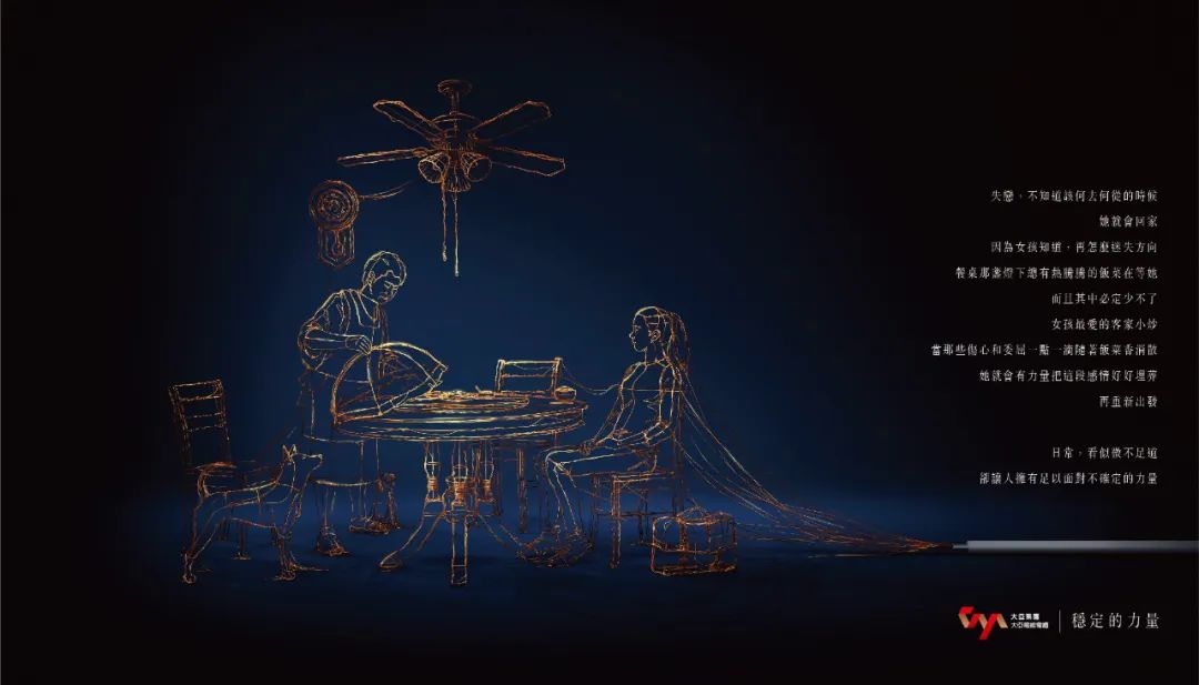 配合著用電線勾勒日常生活場景的畫面,告訴受眾大亞電線雖然容易被忽略,但它也像那些日常里的小事一樣,給予人生穩定的力量。