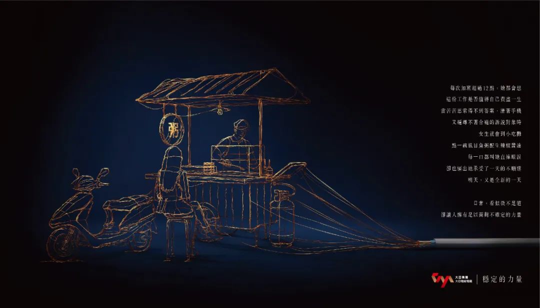 理性的產品用了感性的表達,這是來自大亞電線電纜的系列平面創意海報,它洞察到了電線是日常生活中可能不會注意的部分,但其實它很重要。