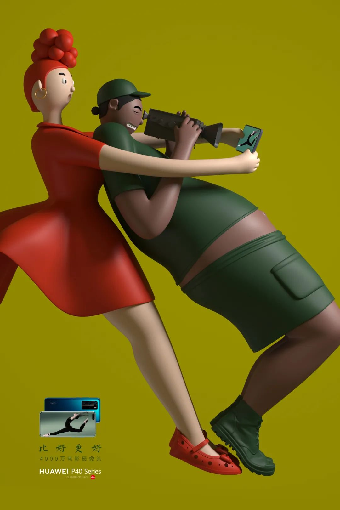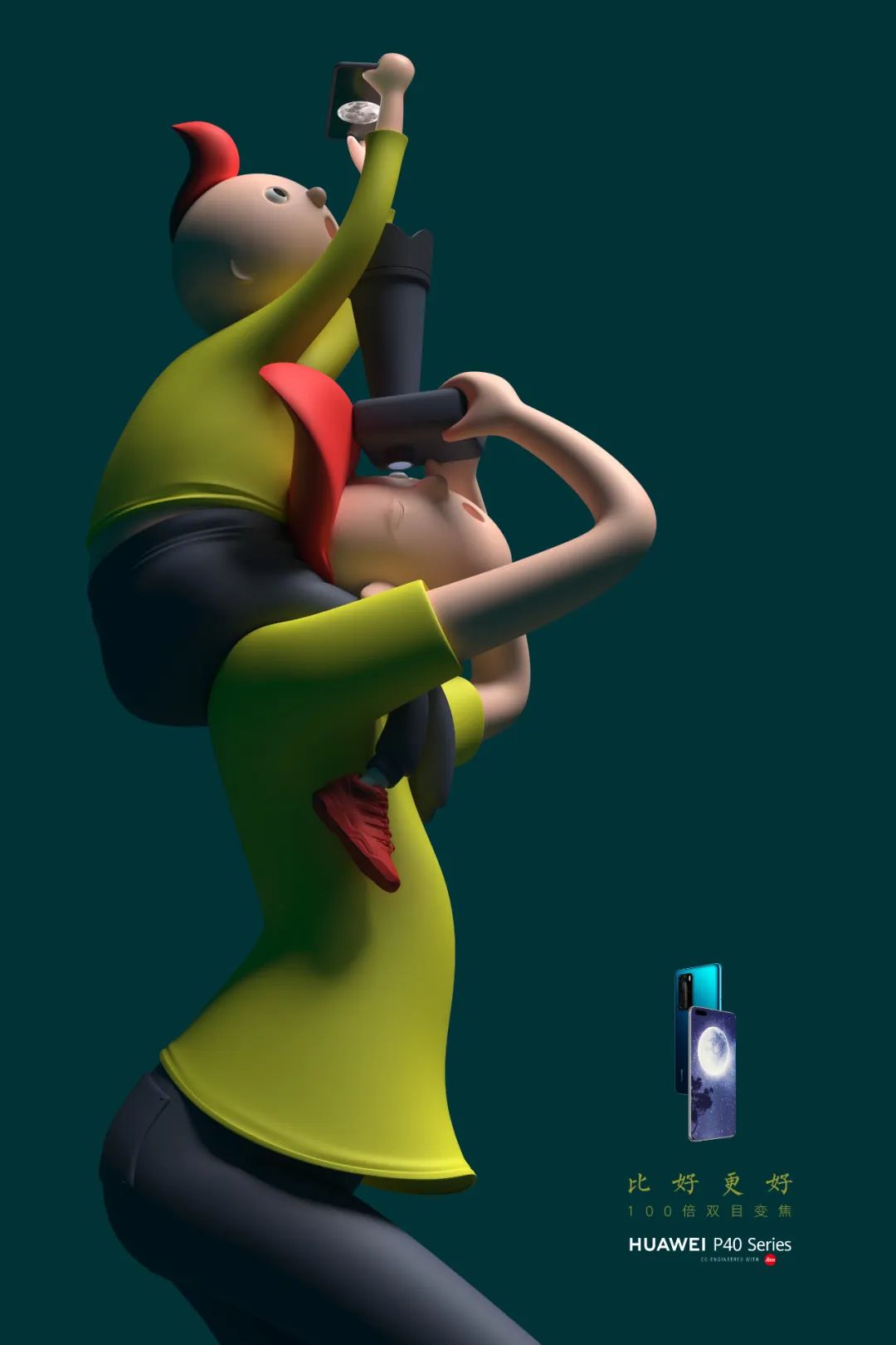 這系列平面創意海報采用幽默的表現手法,因為專業的單反相機沒辦法拍攝到月亮,而去拍攝手機屏幕里拍到的月亮。去展現華為P40的長焦拍攝效果,比專業設備拍得還要好。
