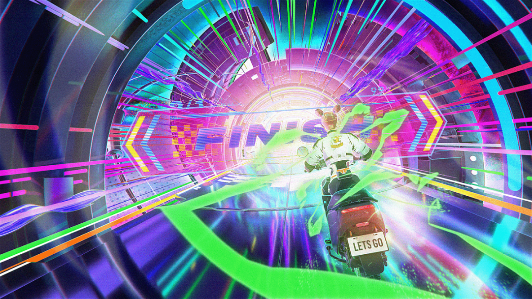 ??3D角色結(jié)合熒光色插畫,效果很酷炫。