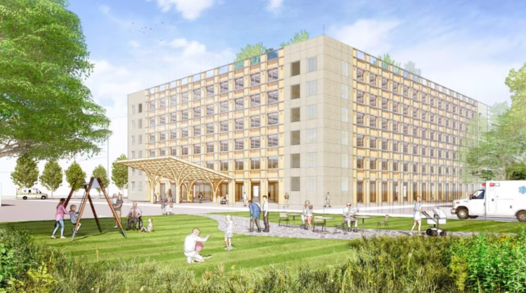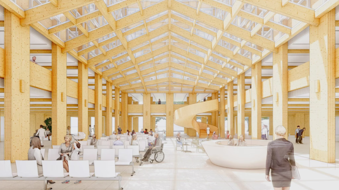 坂茂建筑事務所與烏克蘭工作室AMBK合作,為烏克蘭最大的醫院設計了交叉層壓木材加建項目,由于持續的戰爭,醫院很快呈現出爆滿的狀態,沒有多余的空間接納源源不斷的傷員,新外科中心極其緊迫的建設工程將于明年初開始。