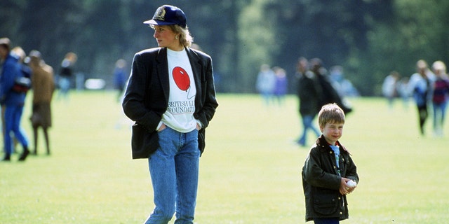 在1988年,戴安娜王妃出席了英國的衛隊馬球俱樂部。她穿著牛仔褲,搭配白色圖案圓領衫和超大號黑色西裝外套。她還配上棕色靴子和藍色棒球帽。從文字描述來看,這個搭配似乎并不“搭配”,但戴安娜王妃穿在身上卻非常搭配。因此,創造了這個潮流。