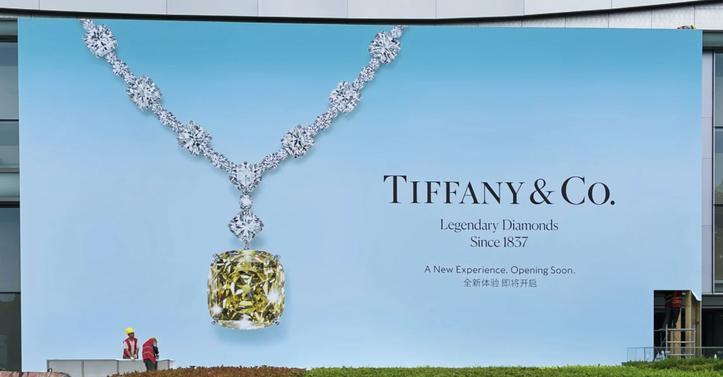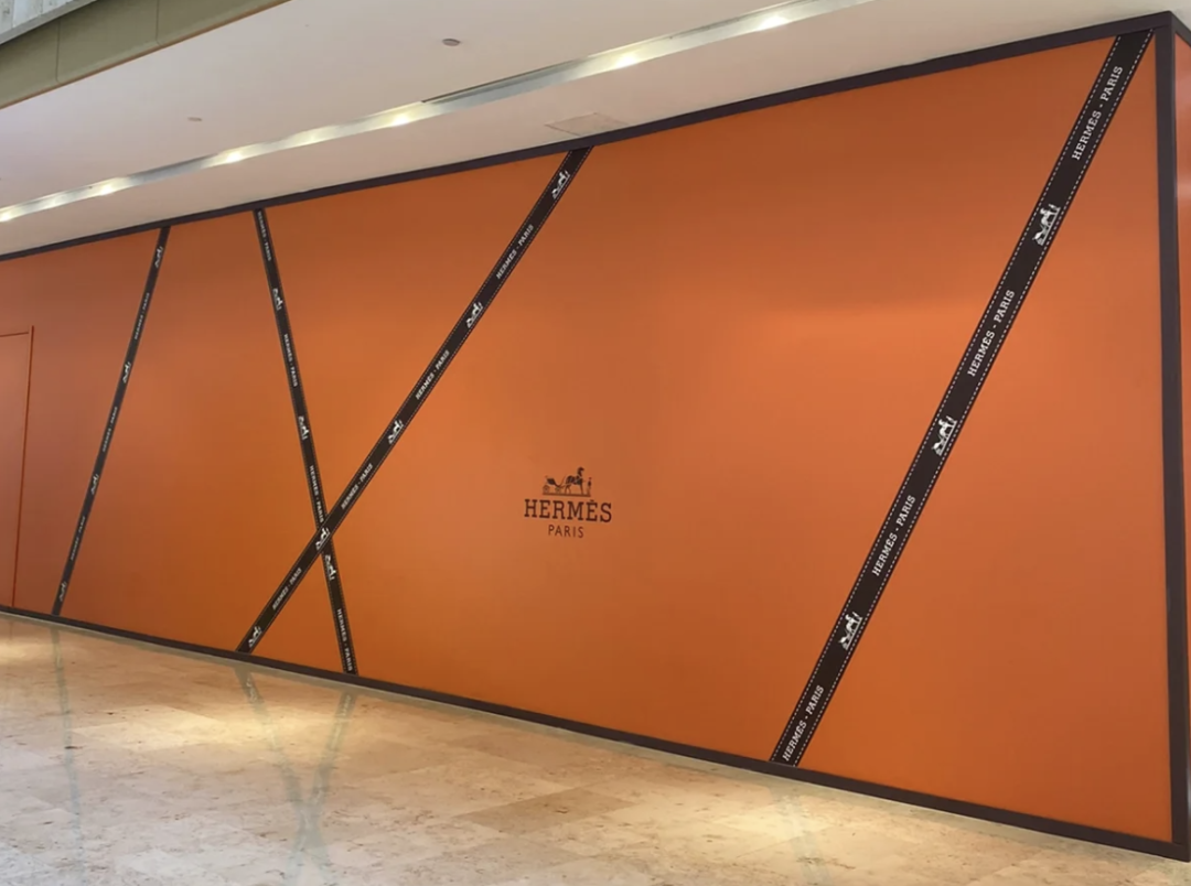 而愛馬仕、Tiffany 等品牌,由于其標志性的品牌色所代表的品質感早已深入人心,在圍擋上應用品牌色就能自然地達到強化品牌視覺風格的作用,再輔以一些經典元素,就能毫不費力地打造出高級感的品牌圍擋。