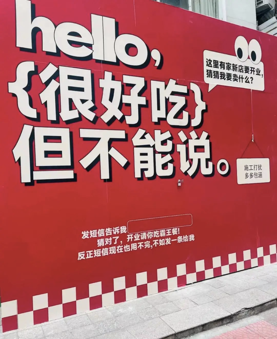 之前某家店在裝修期間寫了「很厲害但不能說」的圍擋文案,勾起了眾多網友的好奇心,結果過后不久市面上就出現了一系列的效仿者,本身挺有趣的文案,也因爛大街而失去了吸引力,這類例子還不少:
