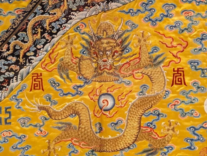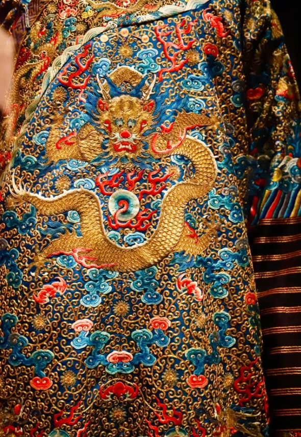 刺繡工匠們常用金銀線勾勒出栩栩如生的龍圖案,這需要極高的技藝和耐心。有時,還會加入各種寶石、珠寶點綴,使得龍袍更顯尊貴。