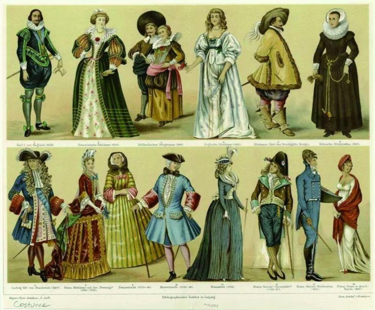 這一時期的歐洲服飾注重使用厚重的材料,如絲綢、絨毛和金屬線,營造出豪華感。