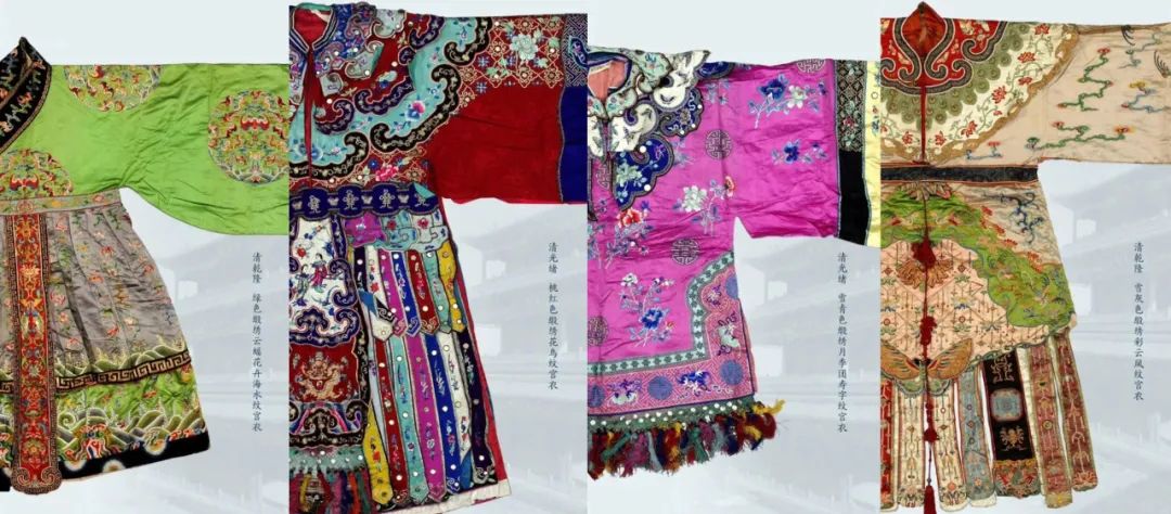 時間來到18-19世紀,中國清代的服飾呈現出獨特的歷史特色,它在設計和樣式上反映了封建禮儀的要求,同時又在細節上展現了極高的工藝水平。