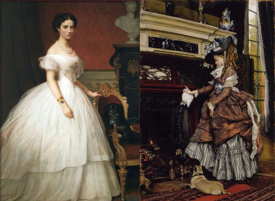 女性的服飾尤其引人注目,長長的裙擺、華麗的褶皺,再搭配上貴重的珠寶和頭飾,使得貴族女性仿佛是走出了童話故事。