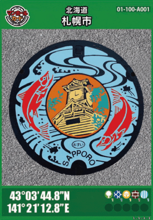 日本約有 12000種井蓋藝術設計,日本下水道宣傳平臺還聯合各地制作發行了五百多萬張“?井蓋卡片”以促進觀光旅游