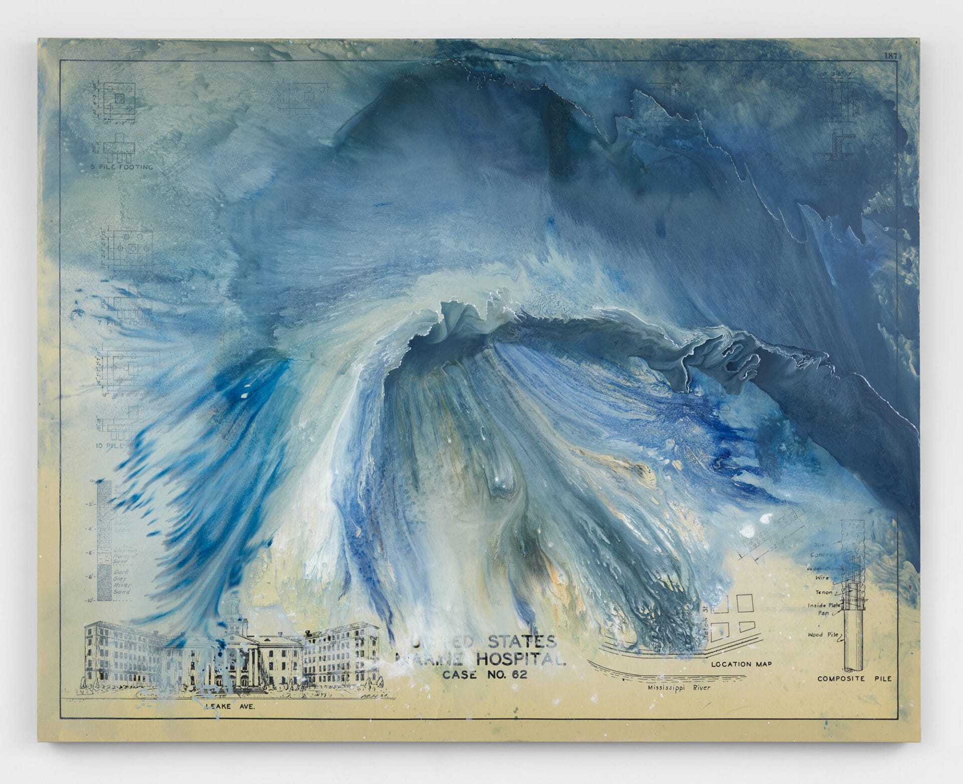 《無題(美國海軍醫院)》(2019),檔案印刷畫布上的油畫和丙烯酸,100 × 127 1/2 × 1 3/4 英寸。菲比·德赫勒攝