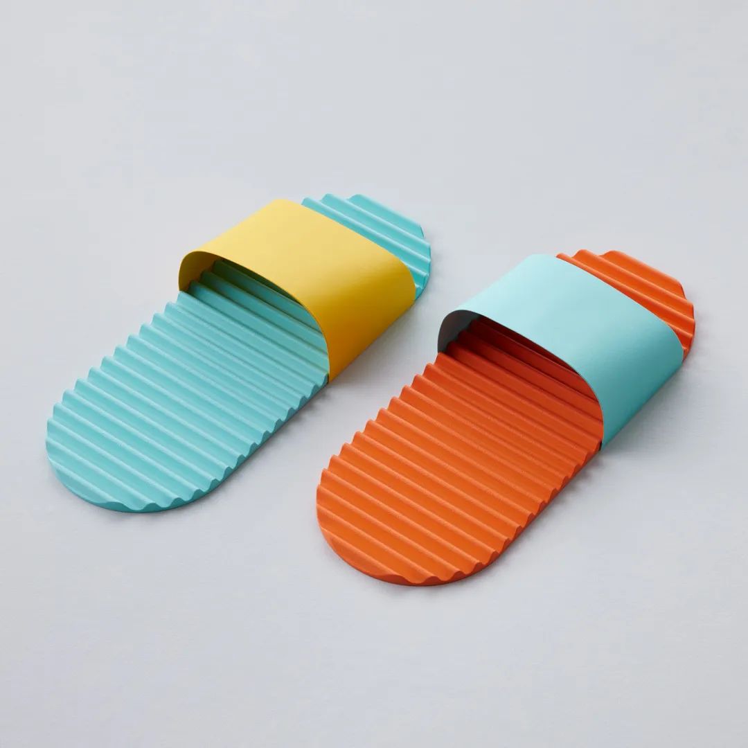 “FLUTE”紙質客房鞋,為您的雙腳帶來色彩。?“當我看到旅館提供的一次性客房鞋時,我回頭看著熟悉的一次性房間鞋,渴望接近旅行的積極感覺。揮舞著精美的紙鞋底,您想赤腳穿著它,并為您的腳底帶來愉悅的刺激。我希望它會脫下鞋子,并在您放心的那一刻產生積極的感覺。”