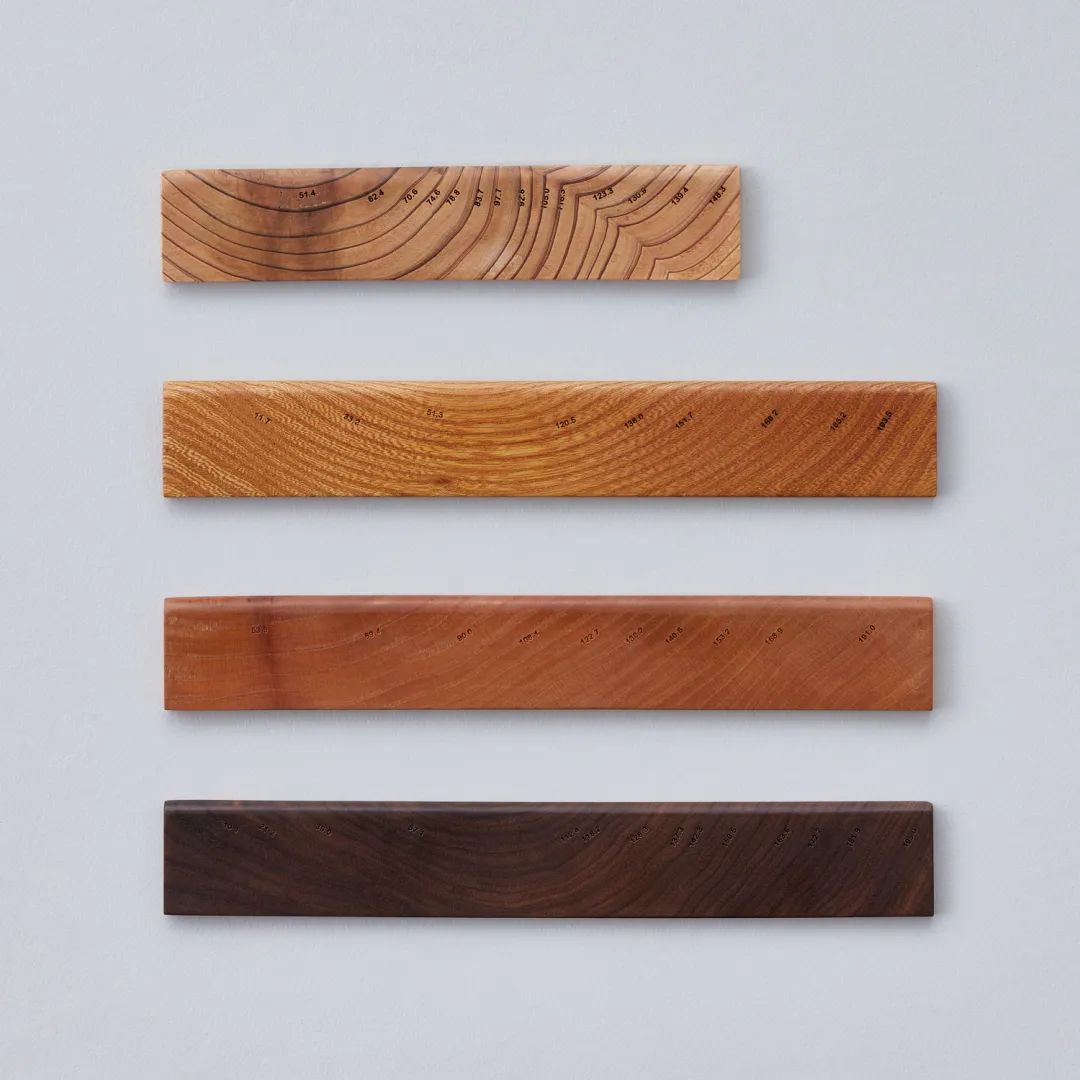 “年度輪尺”使用木環作為許多壽命,并測量抽象整數以外的長度。長度的概念是根據木材生長的自然痕跡重新定義的。年度戒指顯示自然的分布,加深了人與自然之間的聯系,并提供了原始的意義。?還可以記錄雨水,溫度和營養的影響,并將木材的生長與生命尺寸聯系起來。它打破了整數的刻板印象,滿足了測量需求,同時又經歷了自然和原始的感覺,并加深了人與自然之間的聯系。