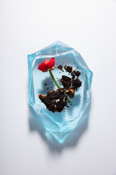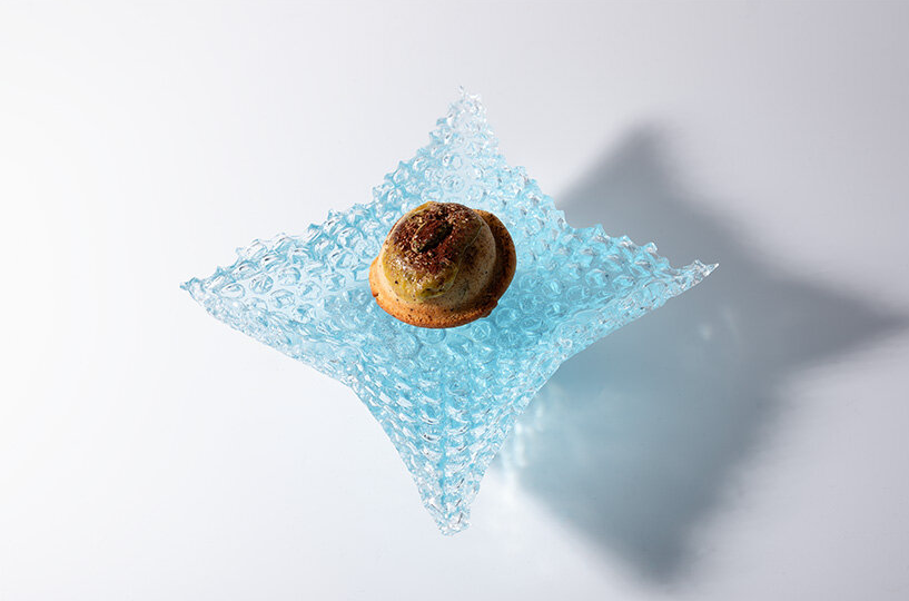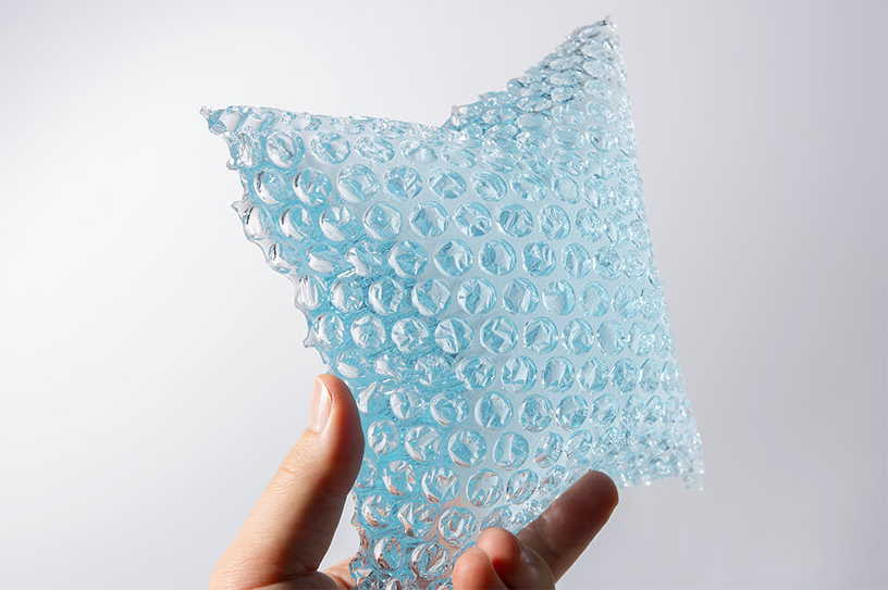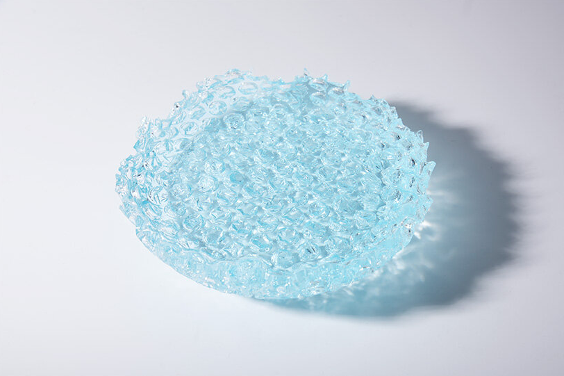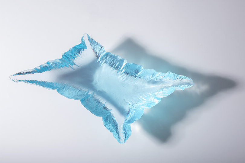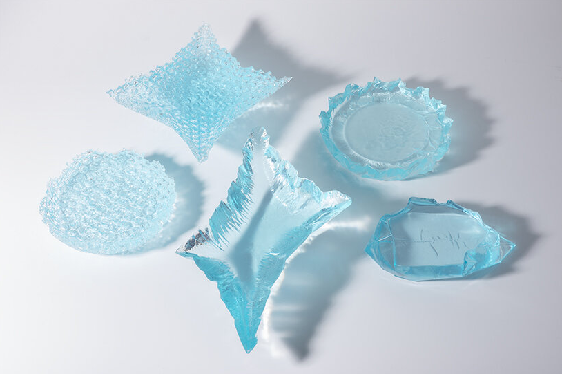 設計工作室 Egosystem 的Lim Wootek展示了冰山項目(Iceberg),該項目通過將廢棄塑料轉化為透明物品,探索其形態。設計師收集了塑料袋、包裝袋和氣泡膜等軟塑料,然后將它們掛在框架上或包裹在容器周圍,用作模具。將樹脂倒入這些模具中,捕捉原材料的紋理,形成自然曲線的物品或托盤,這些曲線是由重力塑造的。最終的作品獨特透明,令人聯想到極地景觀,突顯了冰山的脆弱性,同時引發人們對塑料廢棄物處理的思考。冰山項目目前正在首爾工藝美術博物館展出。