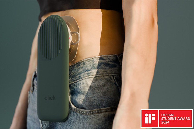 Stoma 是一種為消化系統(tǒng)不完整的患者提供的人工腸道出口。患者必須24小時佩戴一個stoma袋——一個粘貼在體表的袋子,用于收集排泄物。傳統(tǒng)的袋子系統(tǒng)由多個焊接的多材料組成,對于動作不靈活的患者來說使用起來非常困難。Click 是一種創(chuàng)新的模塊化stoma護理系統(tǒng)。通過螺旋連接器和硅膠覆蓋物的組合,Click 實現(xiàn)了對單一材料一次性stoma袋的安全使用。該系統(tǒng)分為精心設計的可重復使用和一次性部分,從而減少了每次更換袋子時的材料消耗,使 Click 成為高度可訪問和可定制的解決方案。