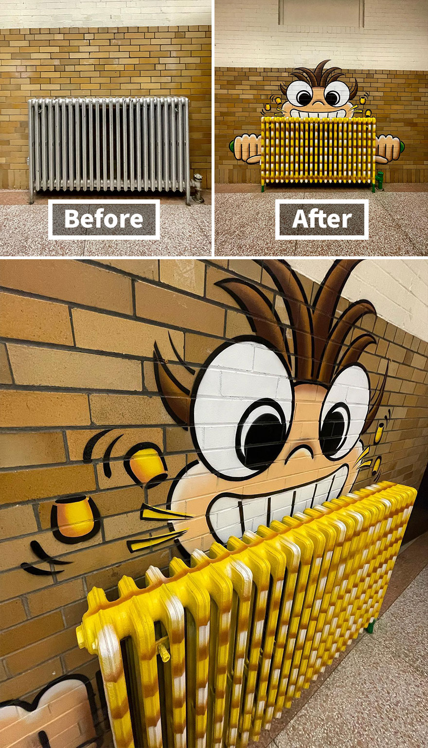 Tom Bob的獨特視角讓他能夠超越常規,創造出令人驚嘆的作品,使他在街頭藝術界備受喜愛。以下是一些Tom Bob將普通街頭物件重新演繹為藝術品的例子。