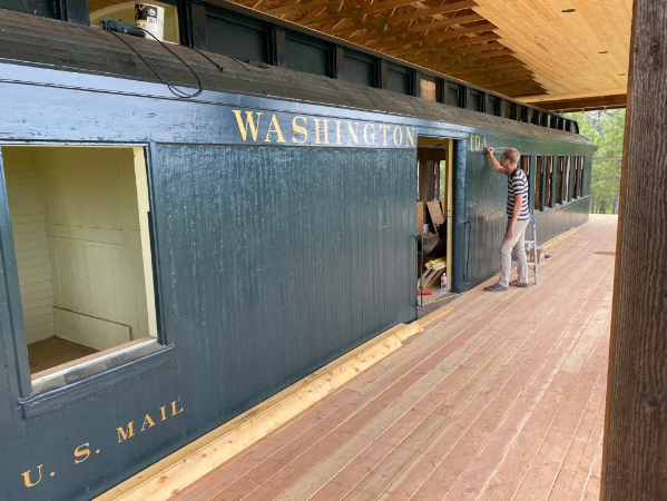 French記得,接下來的修復過程異常繁瑣。法國一家人致力于盡可能保留車廂的原貌。“我們努力尊重原始風貌,同時適應新的用途。”French解釋說。團隊小心地擦去多層灰塵,以揭示車廂的原始顏色。他們發(fā)現(xiàn)并重新粉刷了內部的306號標記,保持了車廂的歷史。弗倫奇還仔細手繪了外部的字母,他通過研究舊照片,力求使其盡可能接近原始的華盛頓、愛達荷和蒙大拿鐵路標志。