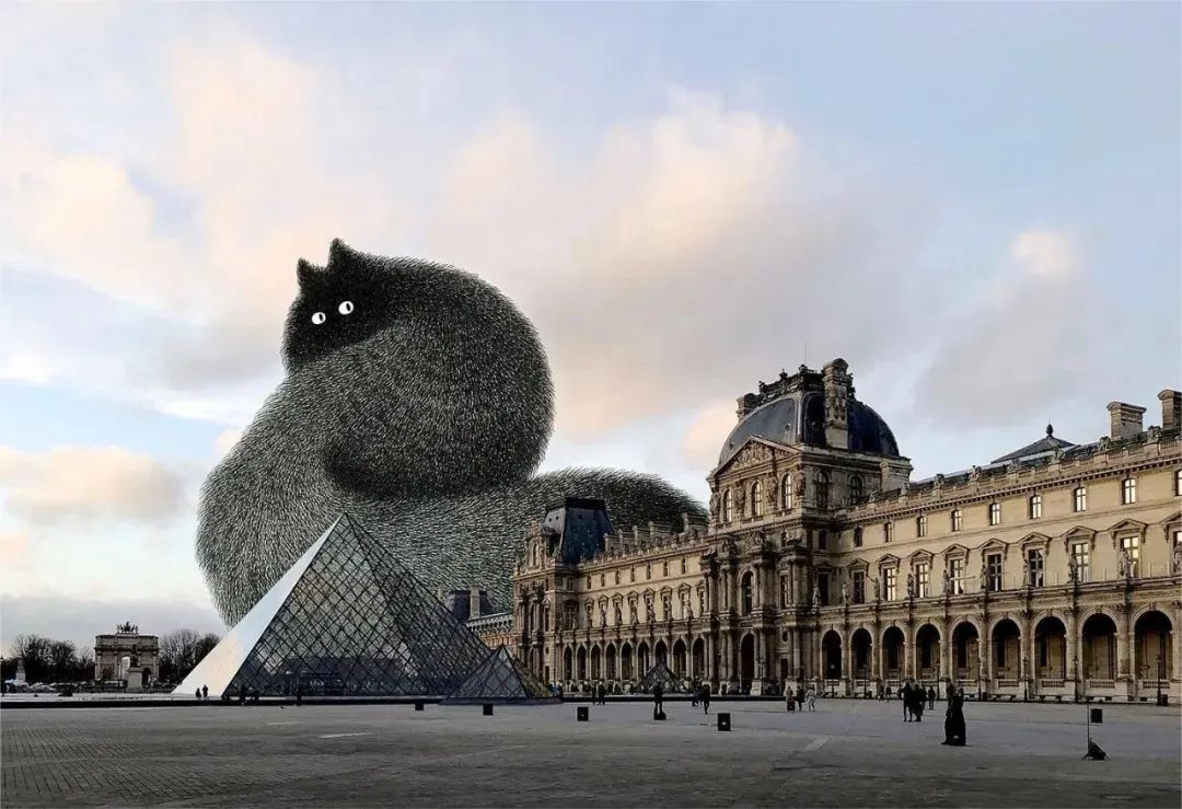 一支針管筆,kamweiatwork拿它來“擼貓”。不僅“擼”的得心應手,還“擼”的活靈活現。他畫筆下的小黑貓咪們,可以隨意在各大景點神出鬼沒!無數的細線井然有序的排列,勾勒出毛發的那種松軟蓬松的質感。