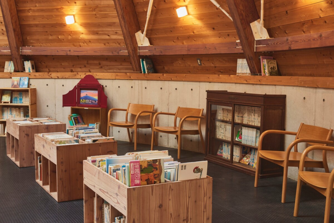 MUJI BASE OIKAWA 內的圖書館位于標志性的橢圓形多功能室的二樓,藏書結合了舊學校遺留下來的書籍與精選新書,為住客提供了閱讀和靜思的空間。