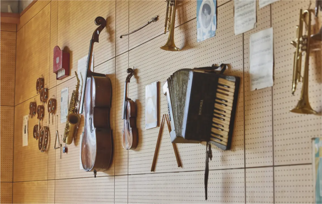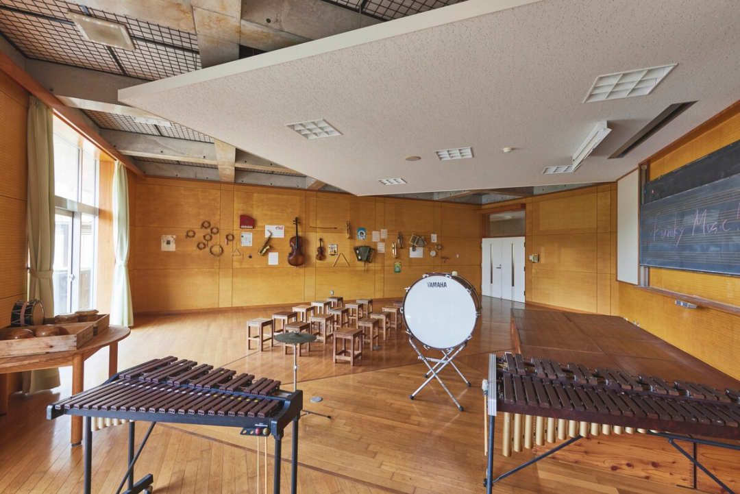 音樂室保留了學校之前的木琴、鐵琴和鼓等樂器,供住客自由使用。同時,這里還展示了以舊樂器為靈感的藝術作品,提供了一種融合藝術與音樂的獨特體驗。
