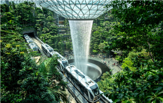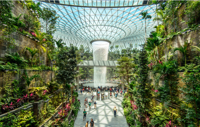 大都市的機場正在轉型成為景點,與城市地標爭奪休閑旅客的注意力。新的設施和體驗已經改變了航空旅行的意義。新加坡樟宜機場就是這一趨勢的最好例子。其最新設施——星耀樟宜機場由薩夫迪建筑事務所設計,擁有世界上最高的室內瀑布、天篷公園和多層室內花園。這些景點為過境旅客提供服務,同時也吸引了當地居民和游客,有效地將機場本身變成了一個目的地。