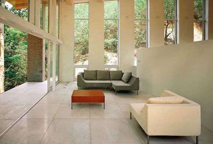 并不像普通庭園圍閉的模式,它在各個(gè)方向都有特殊的開(kāi)口穿透,即使是置于內(nèi)部的庭園也可以一直與外部有視覺(jué)上的連接。