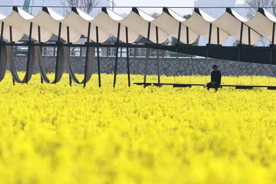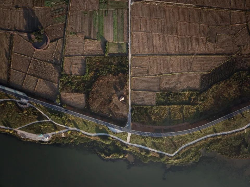 春天的油菜花形成了金色地景;六月之后田里漫起了日漸豐盈的青色水稻,四季輪種的大地上,有厚度的作物景觀形成了新的“地平面”,高度隨著四季而起伏變幻。