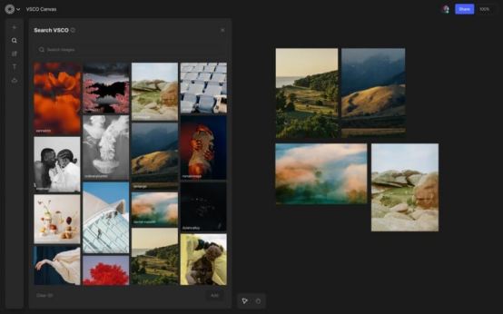 雖然與Canva情緒板工具存在市場重疊,但Wittman認為Canvas更契合專業創作者需求:"外部圖庫素材往往平庸乏味,而VSCO用戶上傳的優質攝影作品能為情緒板注入獨特氣質。"這些圖片雖不可商用,但創作者可直接聯系中意的攝影師進行合作。