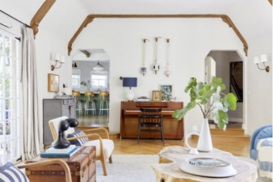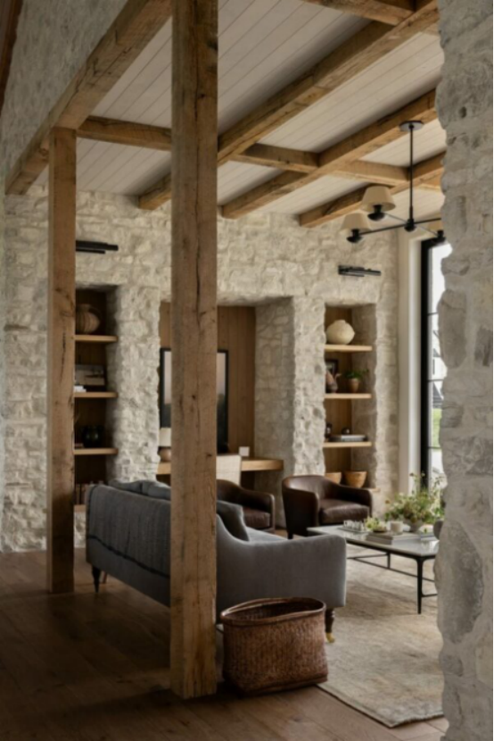 木質元素不僅限于家具——托盤、墻面藝術、燈具甚至裸露橫梁都能引入木質色調。這些細節能呼應主次色調,幫助融合整體配色。