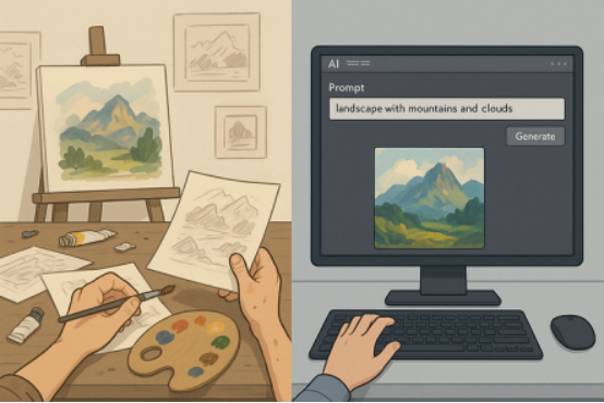 傳統藝術與AI規?;瘎撟鞯膶Ρ龋ㄓ蒀hatGPT生成)