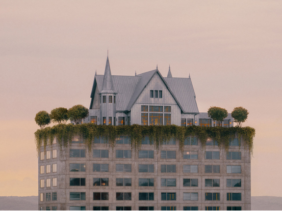 這座矗立于法國北部工業城市梅斯中心的建筑,以八層極簡混凝土方盒為基底,頂部卻"生長"出覆有錫制山墻屋頂的19世紀風格宅邸。斯塔克解釋:"Maison Heler是對連根拔起之根的戲謔,是洛林地區歷史身份的象征建構。那些堡壘般的宅邸魅力成為項目基石,也承載著曼弗雷德·赫勒的超現實故事。"