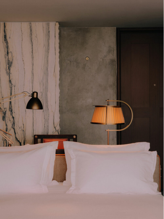 客房以更內斂的方式延續敘事,大面積大理石面板與滑動鏡面營造出"近乎斯巴達式的精神"。斯塔克強調:"剔除所有浮夸,讓每種材質彰顯本色:棉的白,天花墻面混凝土的灰。"唯一的 whimsical 元素是曼弗雷德設計的"思維游戲"裝置,旨在激發批判性思考與自由暢想。