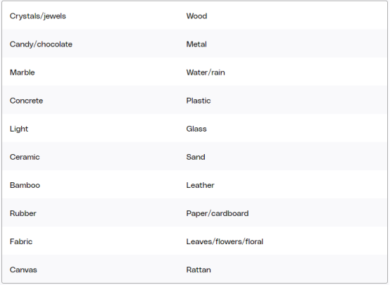 材質能為圖像增添紋理和觸感,賦予AI藝術風格3D效果。材質類AI提示詞能讓你的圖像真正"躍然紙上",你還可以通過使用非常規材質(如糖果或大理石)為普通物體注入超現實元素。