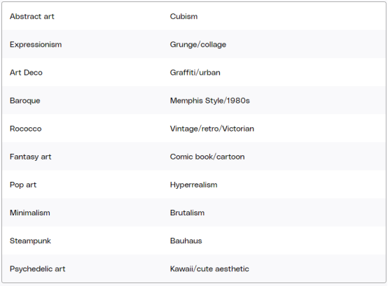 潮流來來去去,但特定風格總會周期性地回歸。嘗試在AI藝術提示詞中使用一些流行的設計趨勢來創作不同風格的AI照片。