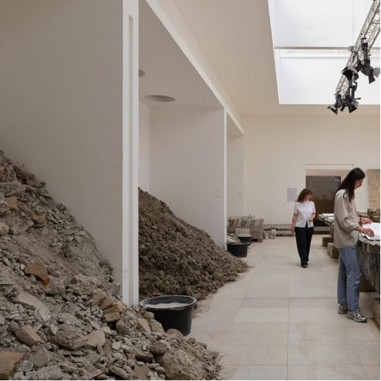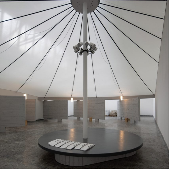 通過六個展廳的模型與裝置,聚焦西班牙建筑業(yè)脫碳研究。中央展廳陳列16個近期作品,周邊五廳分別探討材料、能源、勞動力、廢棄物與排放主題。