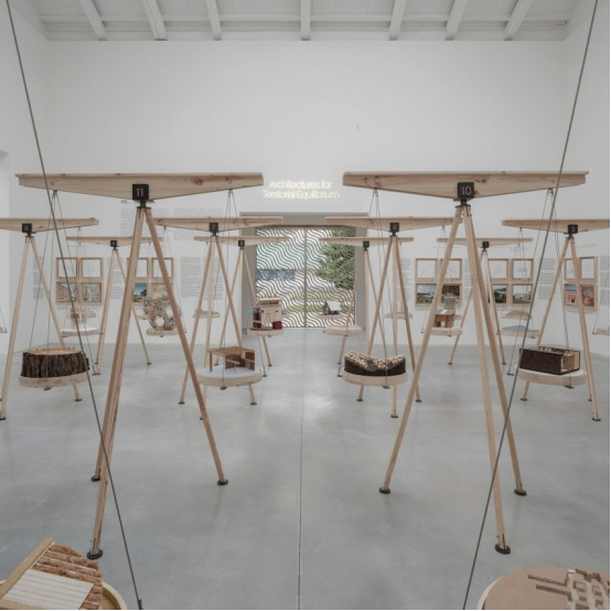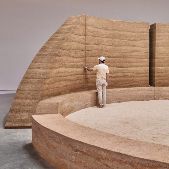 通過農(nóng)業(yè)廢料磚與黏土珠串構成的帷幕裝置,重新連接建筑與土地的關系,探討殖民歷史、建成環(huán)境與地質(zhì)開采的議題。