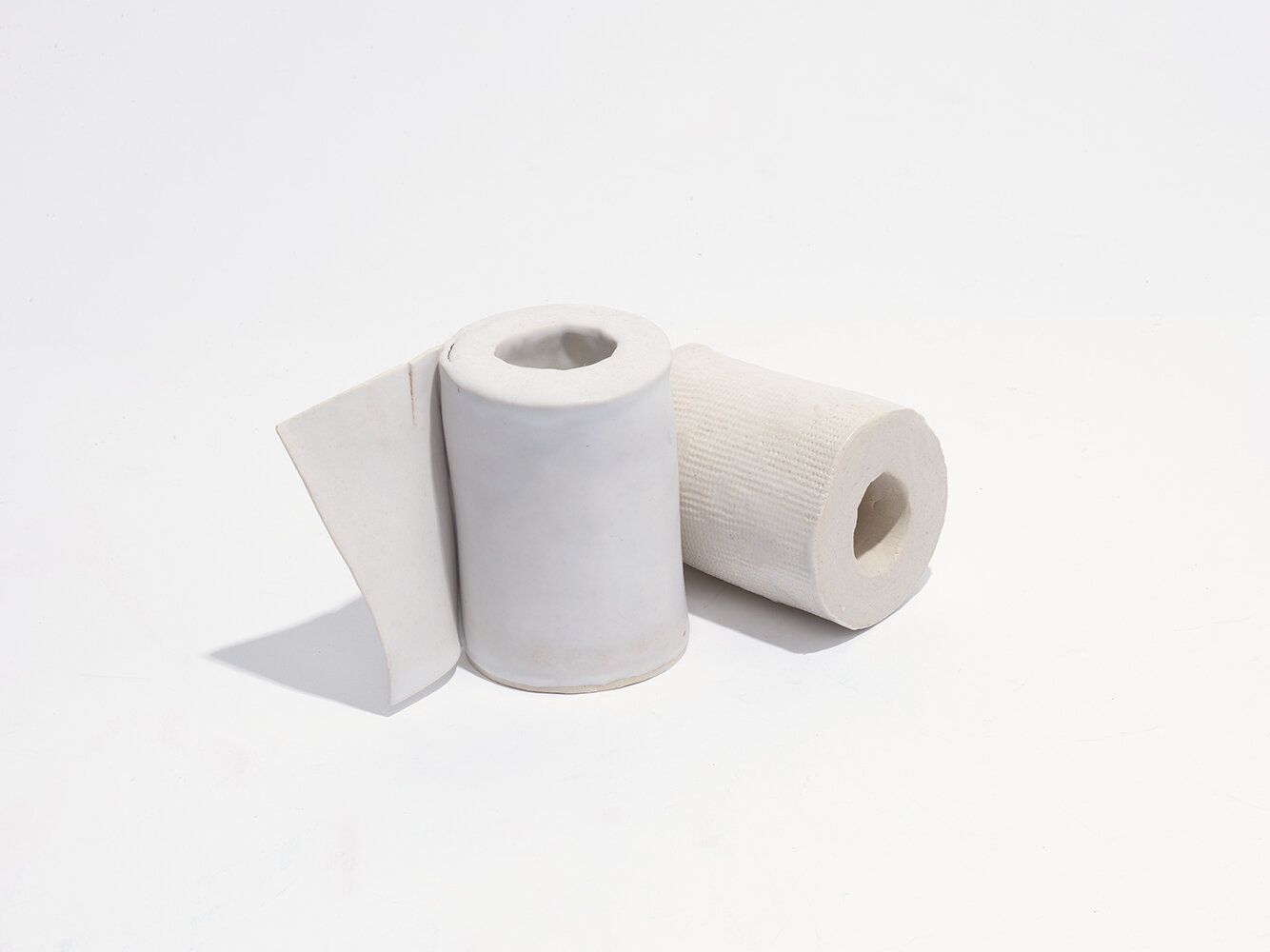 對伯恩而言,作品的魅力在于對熟悉物的非常規演繹:"我腦中有一份不斷變化的'合格物品清單',通常是那些家家戶戶都有的經典物件。"她尤其鐘愛材質轉換的魔法——用堅硬冰冷的黏土再現柔軟物體的質感。"拖把就是絕佳案例,"她解釋道,"它可能蜷縮在角落,拖布條散開的樣子特別生動。"
