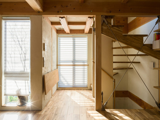 建筑師巧妙地應對了東京嚴格的建筑法規,利用轉角地塊的特點最大化建筑占地面積,營造出令人驚喜的通透與寬敞感。裸露的木柱與橫梁既致敬了傳統日本工藝,又符合現代防火要求,使室內既溫暖又結構清晰。