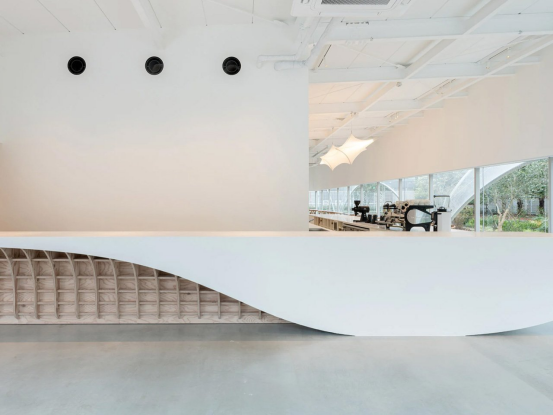 天花板受折紙藝術啟發,增添了層次感,而空間從實到虛的漸變則體現了日本對“連續性”而非“邊界”的理解。
