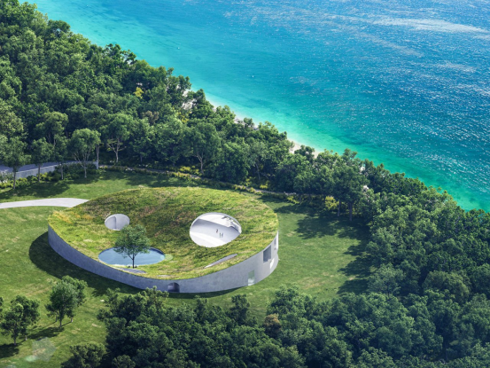 藤本壯介設計的石垣島大地別墅重新定義了建筑與景觀的關系。這座位于沖繩伊是名島的別墅以圓形輪廓與起伏的綠屋頂消融了內外界限。巨大的屋頂開口將天空與海洋框入視野,體現了日本“緣側”(engawa)理念——連接人造與自然的過渡空間。