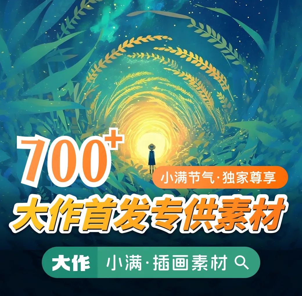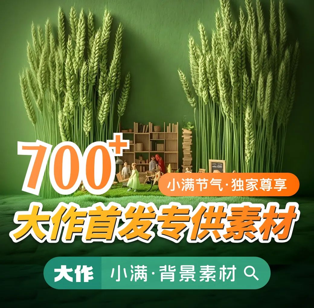 大作精選了一系列【小滿主題】的圖片素材,為您繪制一幅東方美學圖卷。麥穗低垂、蠶食桑葉、青黃相接,綴以農人戽水、村落炊煙裊繞。從節氣文化海報到新中式視覺設計,精準詮釋將熟未熟的哲學意境,用設計語言捕捉天地間最精妙的生長刻度。每個元素都自帶“不加班”屬性!打工人看完只想說:設計師的福報,來了!
