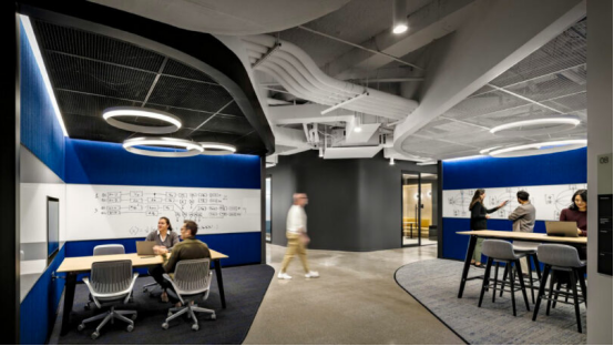 Gensler設計總監John Budesa闡釋道:"我們構建了支持創新的空間生態鏈"??偛繛?000余名員工規劃了三大功能帶: