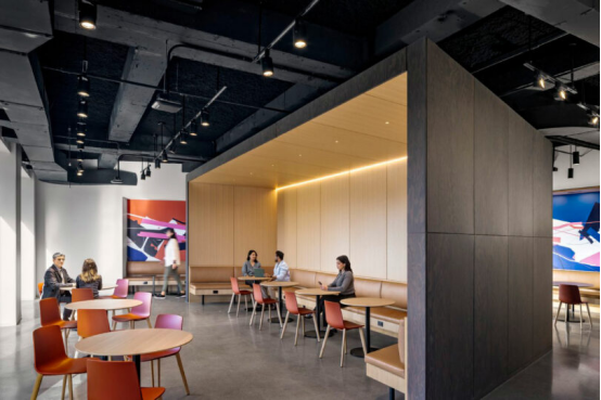 十層核心區整合了全功能廚房、咖啡廳及300人禮堂。家具選擇強調"舒適效能"——每把座椅都經過人體工學適配,打破傳統科技公司過度依賴休閑沙發的套路。